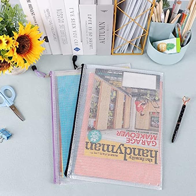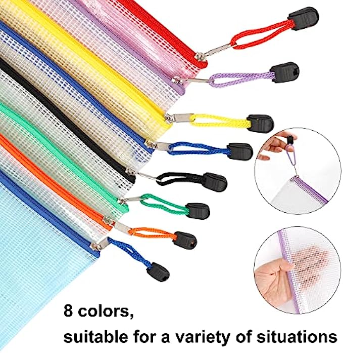 PRODUCT SIZE: 13.2" x 9.25"/33.5cm x 23cm. The mesh zipper pouch larger than letter size/A4 size, please confirm the size of the product carefully before purchase.